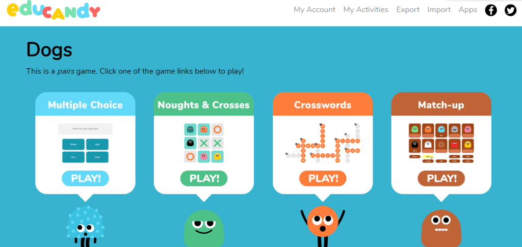 Press here to play a pairs game about dogs. I encourage you to do your own games as well and share them with each other on our classroom page.