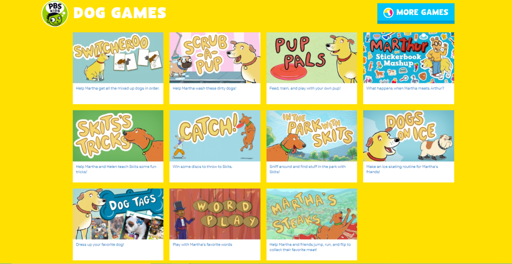 click on the green button and then you can choose a game to play related to our Dog’s project- Enjoy!